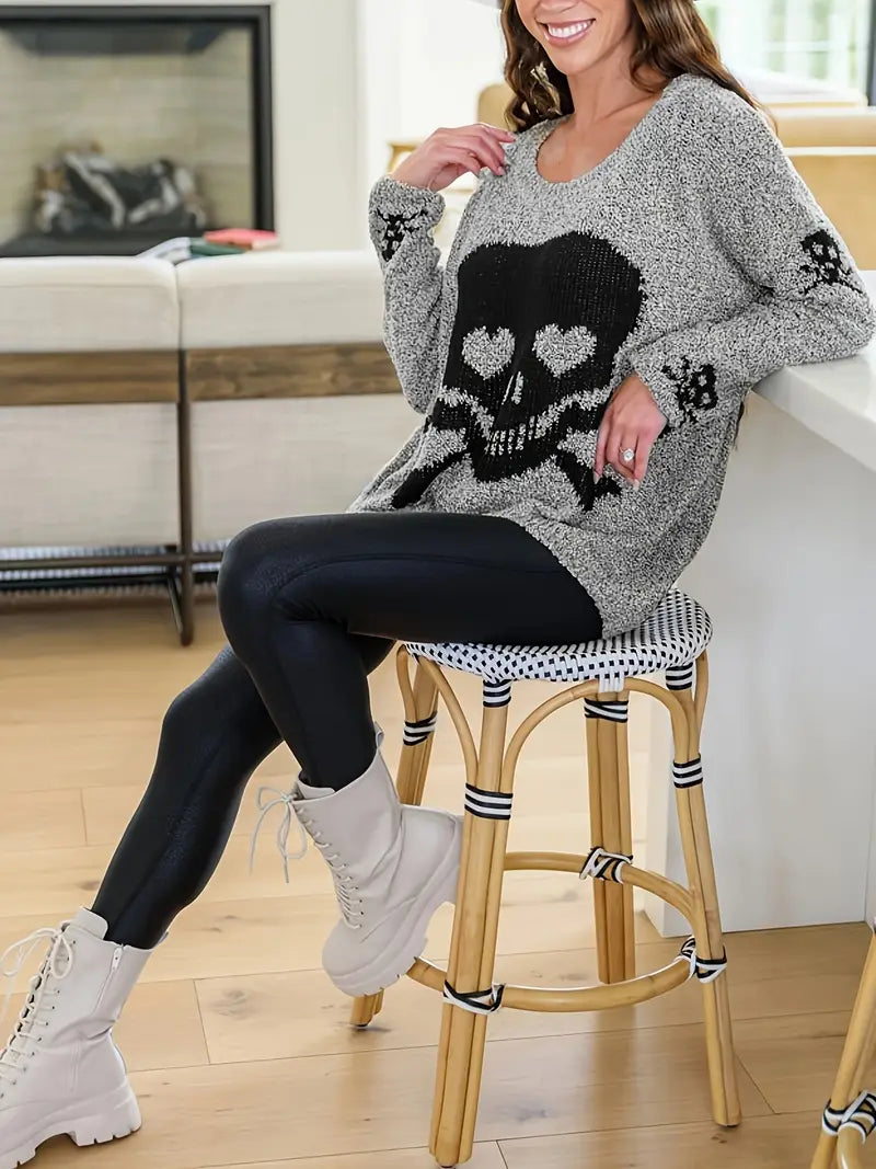 Introducing the Cozy Skull Heart Crochet Knit Sweater, a unique blend of style and comfort designed exclusively for women who embrace individuality in their fashion.